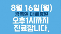 2021년 8월 16일(광복절대체휴일)은 오전1시까지 진료합니다.