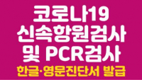 코로나19 신속항원검사 및 PCR검사 시행 (한글 및 영문진단서 발급 가능)